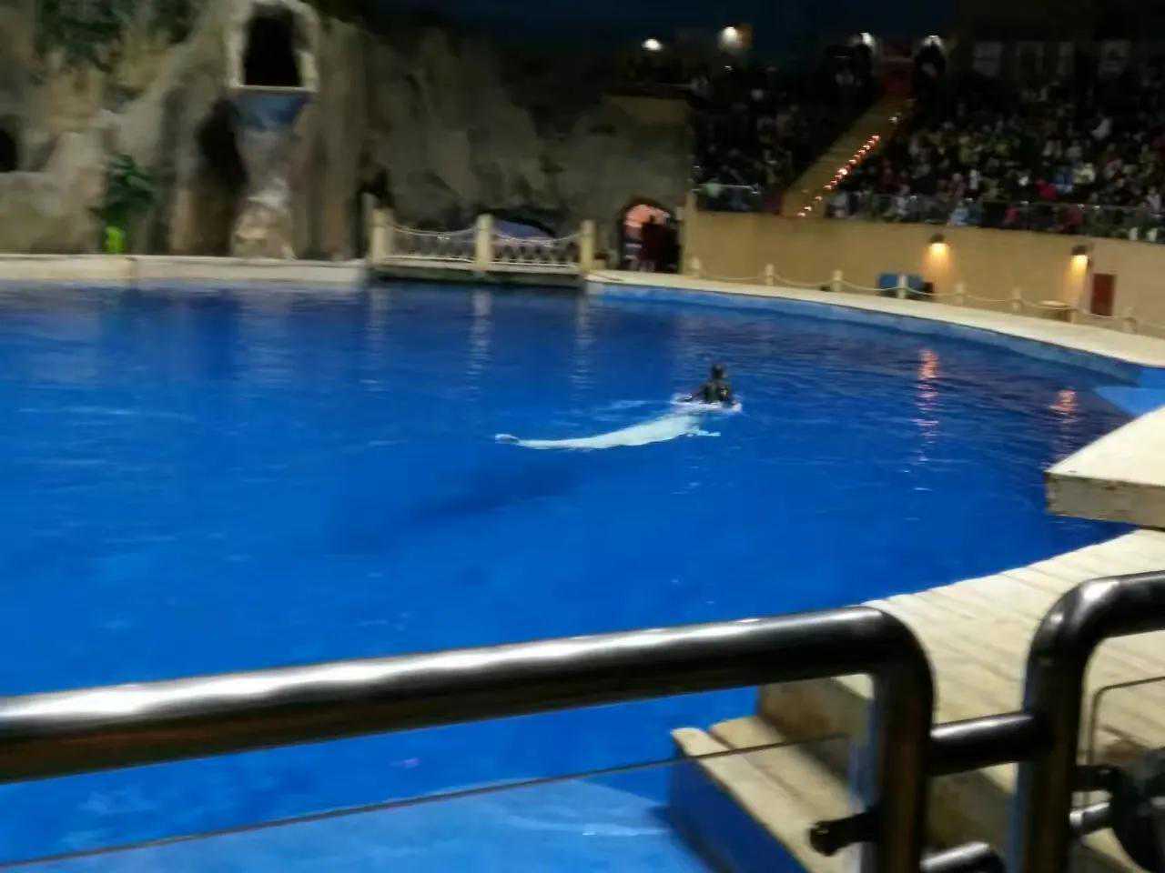 第二个就是海洋馆了,海洋馆不错,没有天气的影响,看的很入迷。也许是为了配合演唱会,在离演唱会开始前,有很多的动物表演,大白鲸、海狮、海豚纷纷登场,小小宝看的目瞪口呆大呼小叫兴奋不已,几个美人鱼的出场结束了表演。
