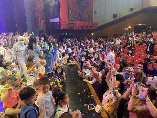 演出结束时,孩子们自发起立,掌声、欢呼声经久不息。驻华使节和孩子们登上舞台与演员合影、交流,久久不愿离去,场面十分热烈。大家表示,非常喜爱这场演出,这将是孩子们在中国的岁月里无比美好的记忆。