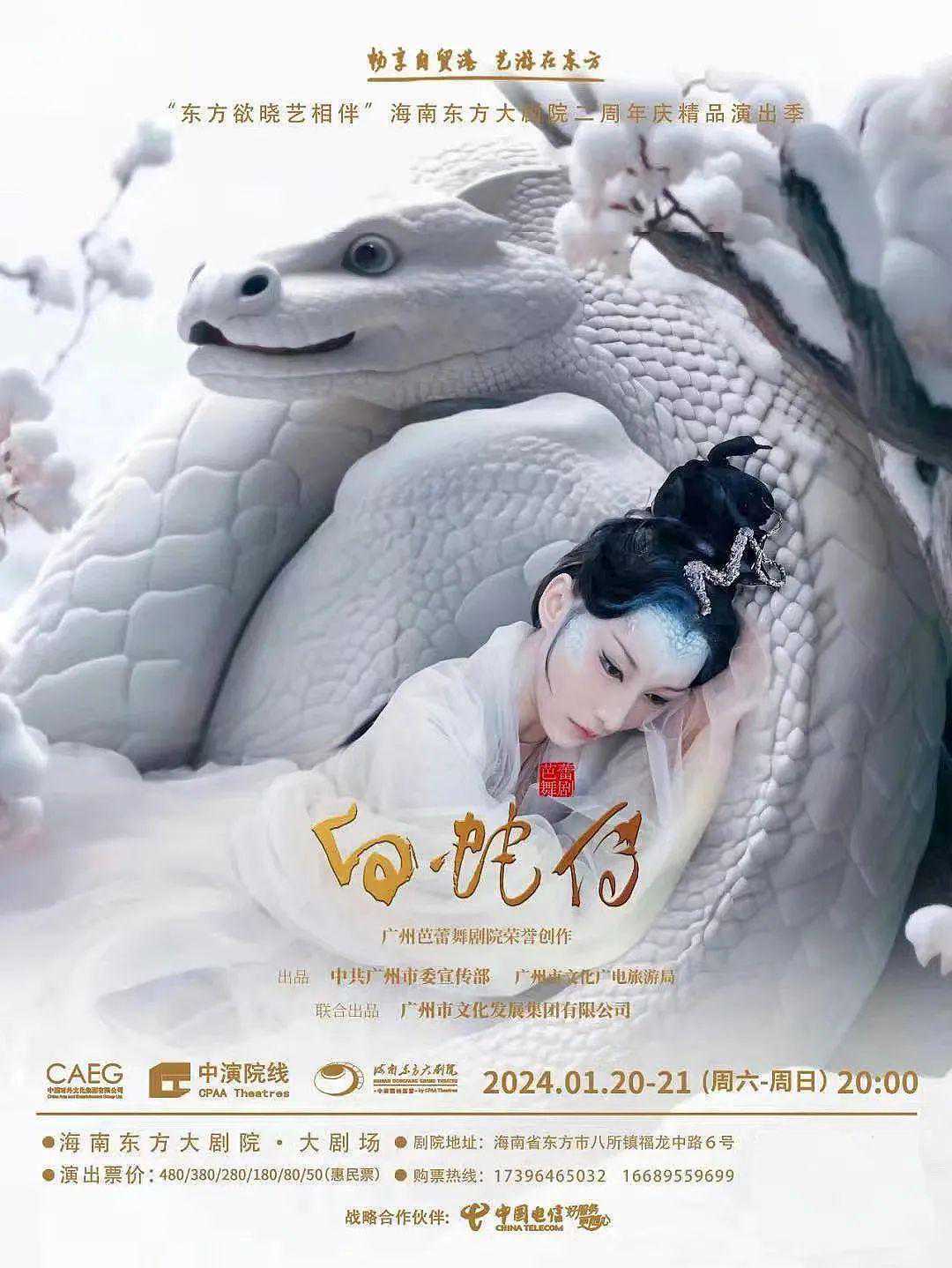 芭蕾舞剧《白蛇传》演出时间为1月20日(周六)20:00和1月21日(周日)20:00。