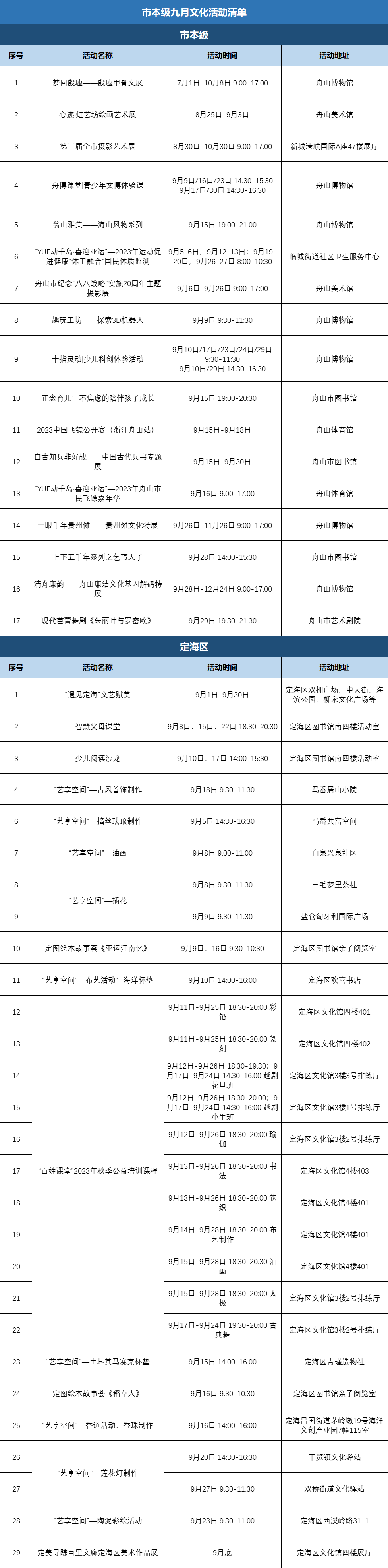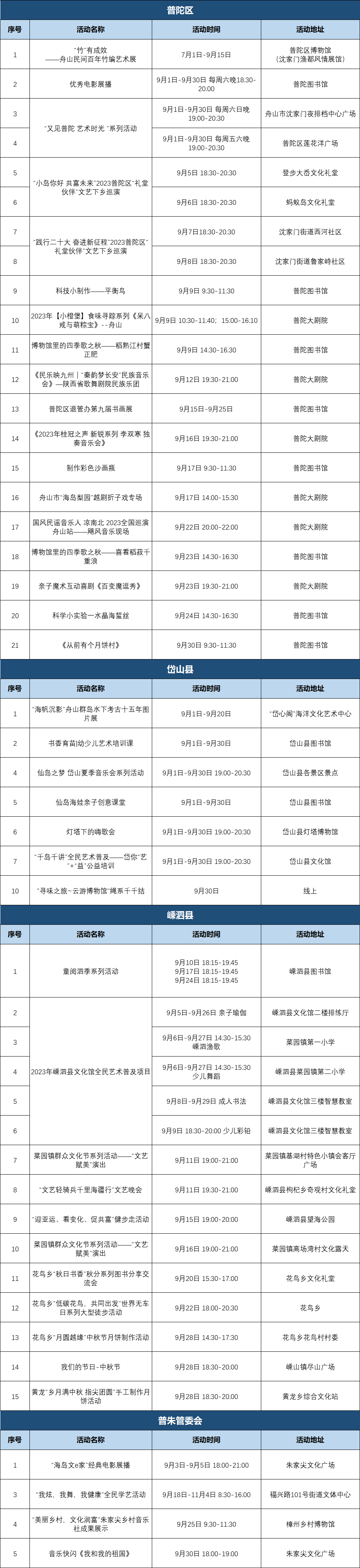 九月,舟山各地有哪些精彩的文化活动?一起来看看吧~