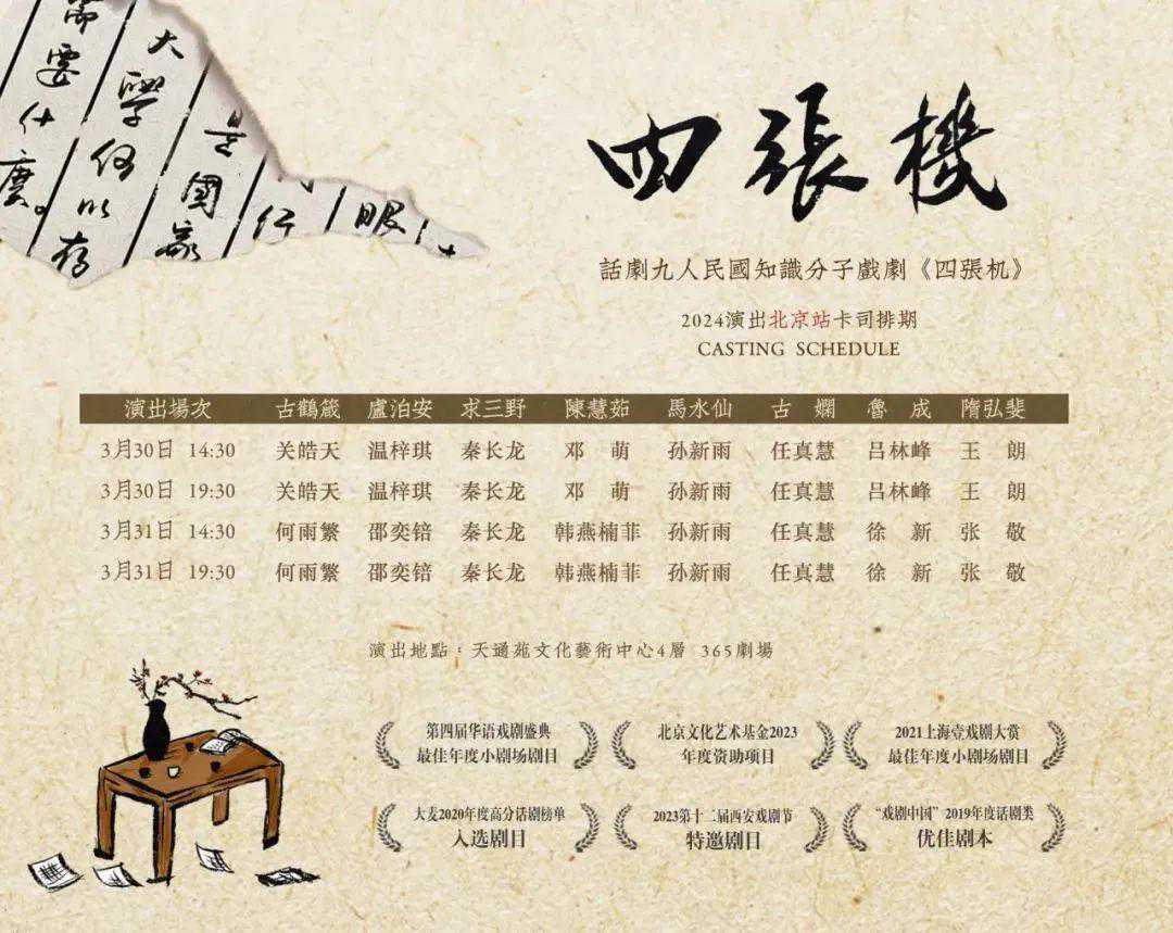 《四张机》剧名中的“机”,是卷子的意思,也指向机会、机变。它的创作灵感源于20世纪初发生在北大的一则「轶事」: