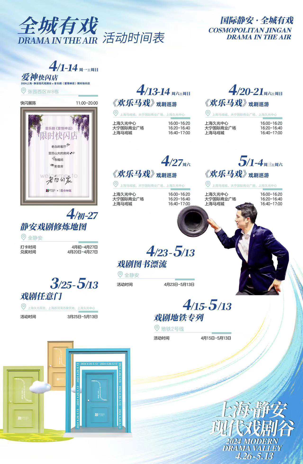 今年的现代戏剧谷首次将文化IP植入静安重要商业地标,创新文化流量向市场消费转化的新模式。4月1日,音乐剧《爱情神话》张园特别快闪店将正式开放,在这里,市民可以穿越剧中“老白的家”,在影音室、服装间、客厅等空间,可以体验剧本攥写、音乐创作、服装设计、排练演出,每周末还将带来分享会、手工坊等不同活动,通过逛展、打卡等方式,沉浸式体验戏剧世界。4月13日-5月4日,“欢乐马戏”将推出“上海马戏城-上海久光中心-大宁国际商业广场”巡游线路,分别以互动性强的小丑、魔术等演艺内容,深化“ERA文旅IP”与大宁片区商圈合作,并以两家商圈为节点,发动品牌方推出惠民活动,做到活动有亮点、有燃点,市民有体验、有消费。全球精品咖啡品牌蓝瓶咖啡首次与现代戏剧谷和音乐剧《爱情神话》合作,推出限定特饮——茉莉新奥尔良式咖啡。深耕茶泉文化的二泉吟饮用水,成为现代戏剧谷年度活动的指定用水,共同解锁品牌跨界的新玩法。