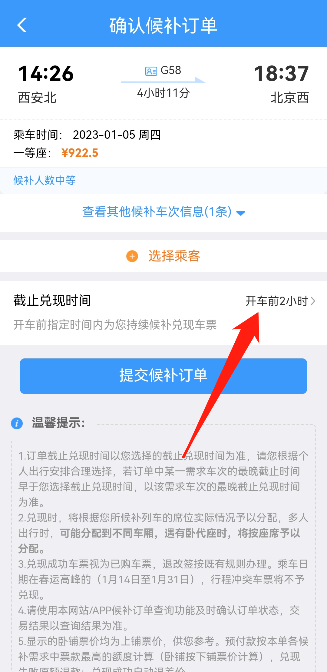 选择乘客信息以及截止兑换时间