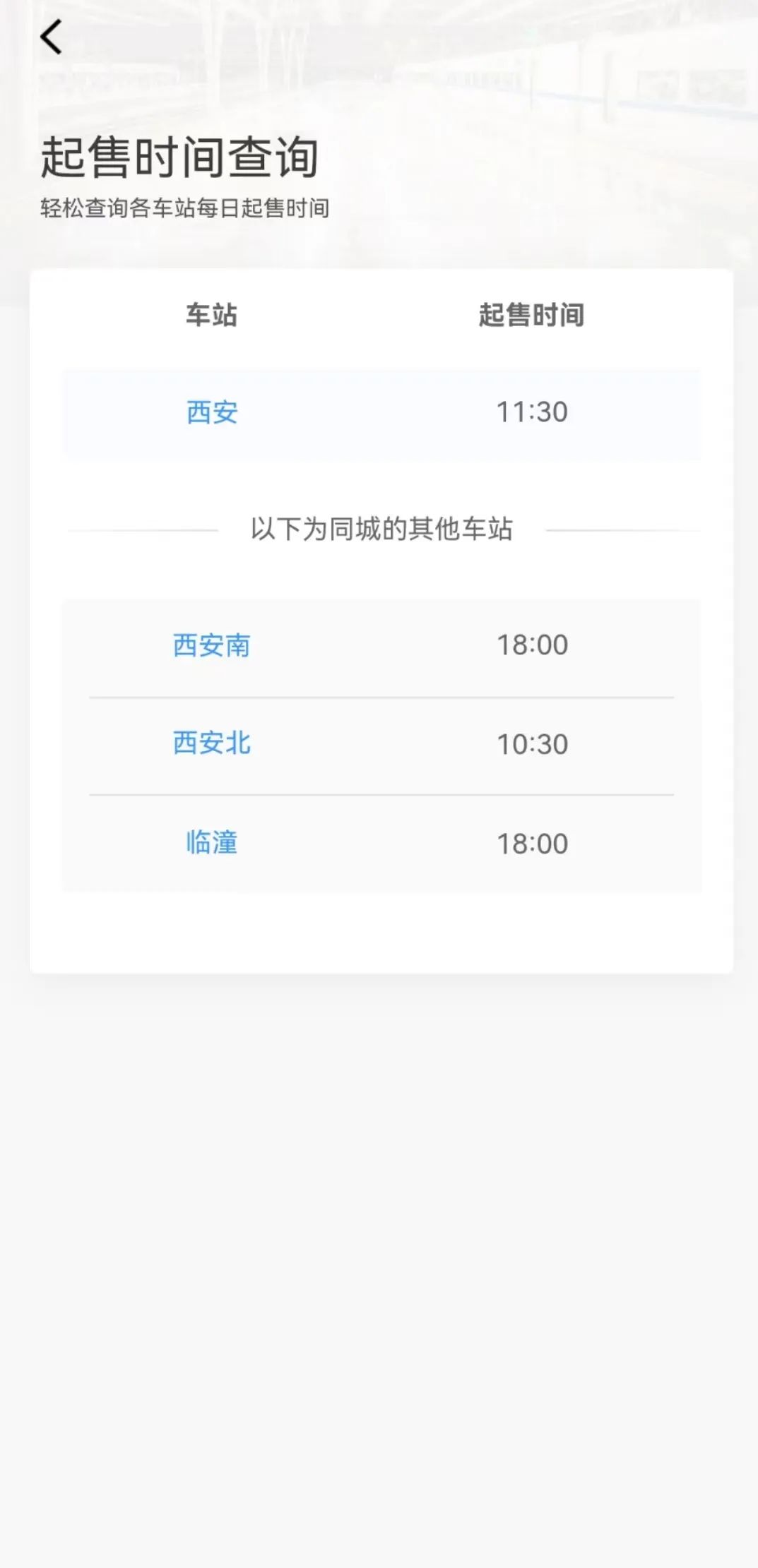 不同车站购票时间不同