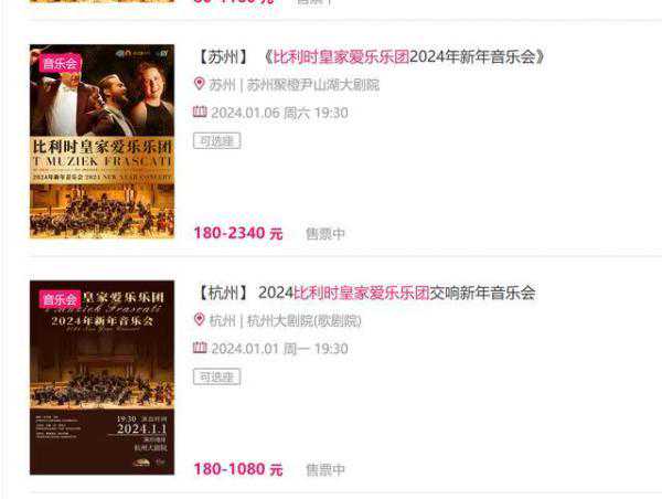 大麦网显示,比利时皇家爱乐乐团从12月24日至2024年1月7日,将在中国10个城市举行10场新年音乐会,票价从80元到2340元不等。