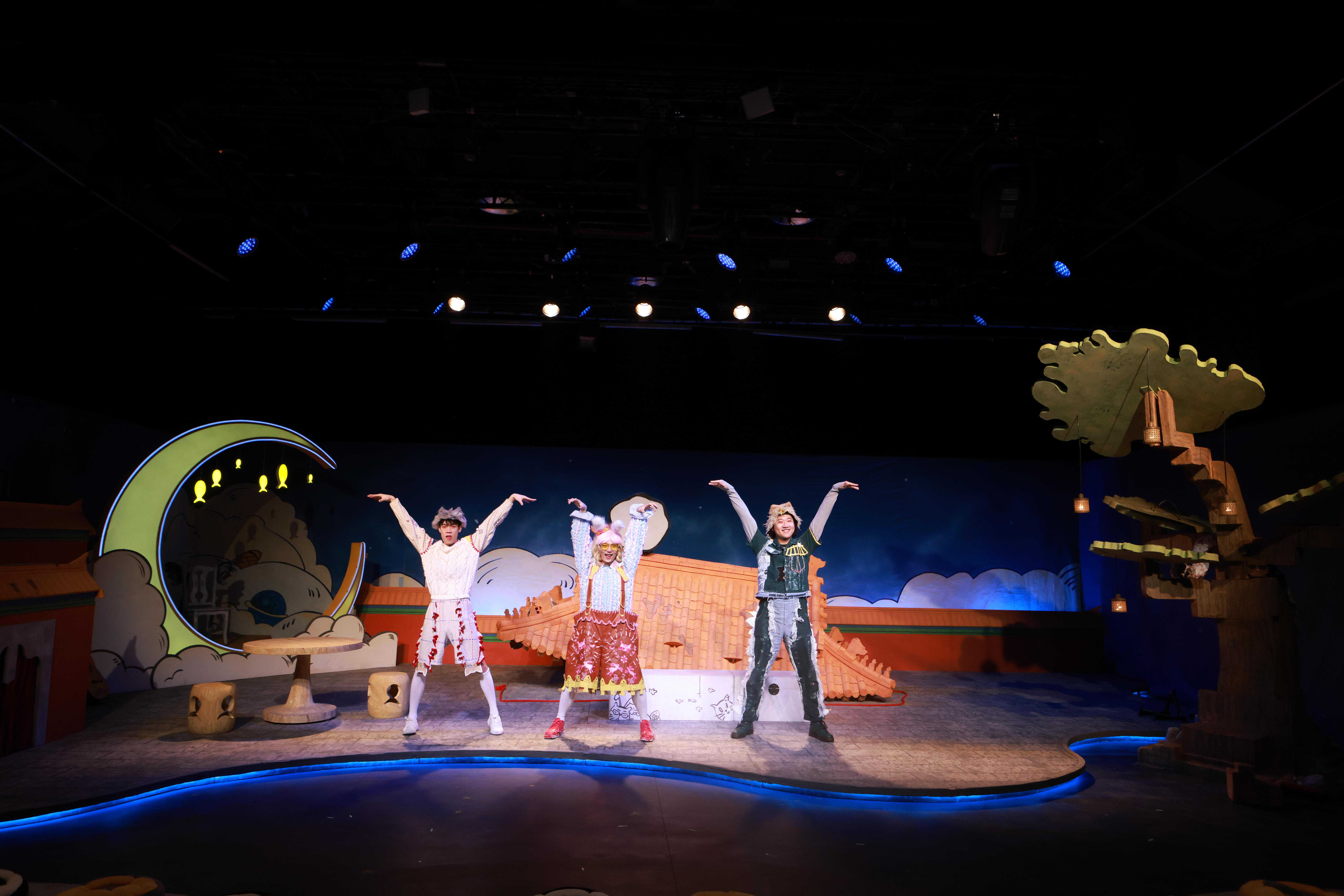 《猫神在故宫》将剧场幻化为具有京味特色的奇幻“猫洞”,结合故宫传统文化,讲述北京城的人文历史和时代变迁。该剧舞美华丽,故宫屋檐、巨大的猫洞装置与可爱的猫偶,构造了富有童话色彩的猫咪世界。