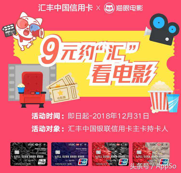 内容:每月单笔有积分消费2888元或等值美元,次月可获得9元猫眼观影券2张,可购买55元以下3D/2D电影票。