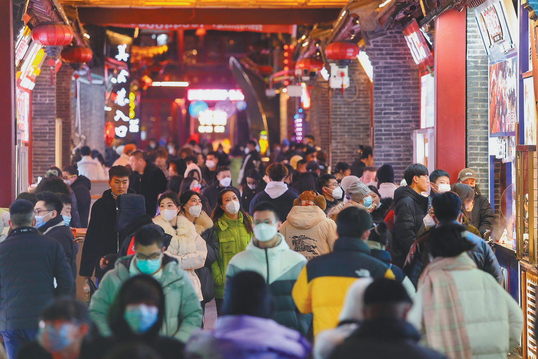 2月5日晚,全长586米的锦州凌河夜市千灯齐放,游人穿梭。