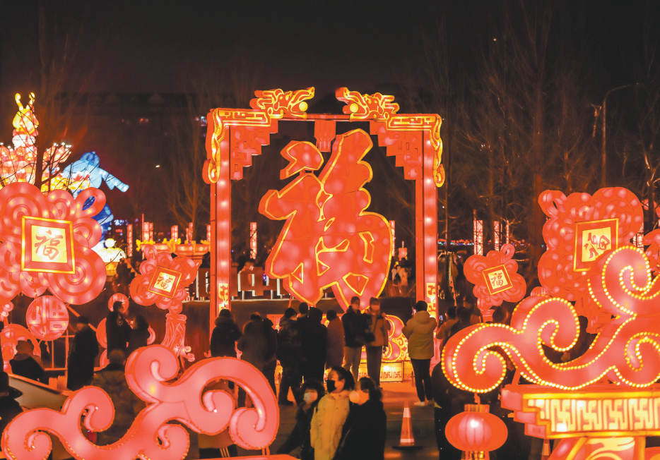 2月4日,在沈阳老北市和沈阳路口袋公园,大批市民逛灯会、赏花灯。