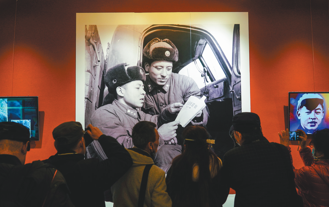 3月4日,观众在辽宁美术馆参观“永恒的雷锋”展览。