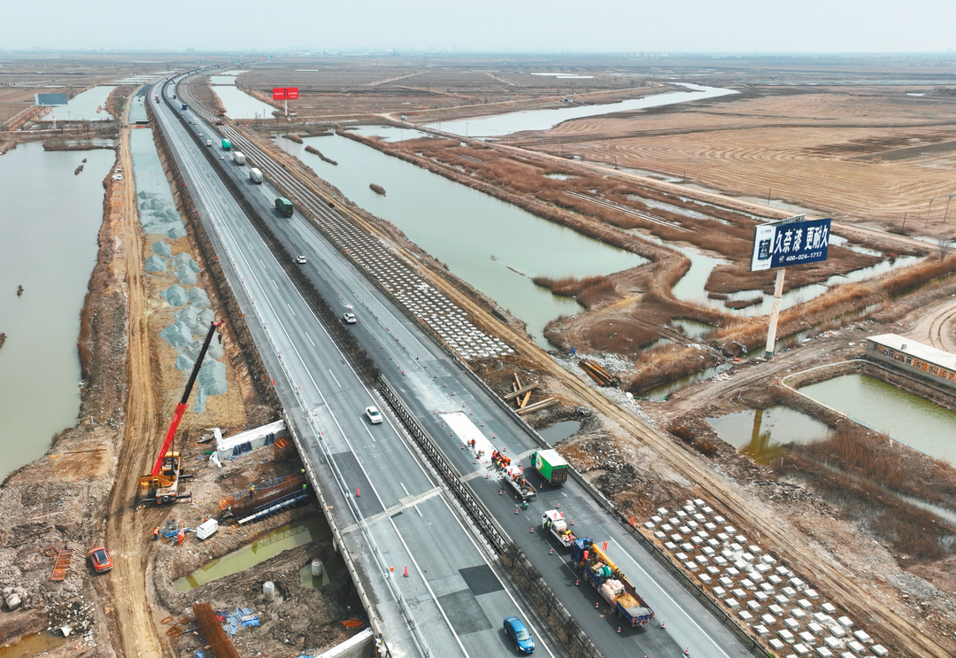 4月9日,全长238公里的京哈高速公路绥中(冀辽界)至盘锦段改扩建工程正在紧张施工。