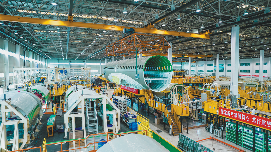 6月16日,沈飞民机的空客A220机身装配生产线,各项工作有序进行。