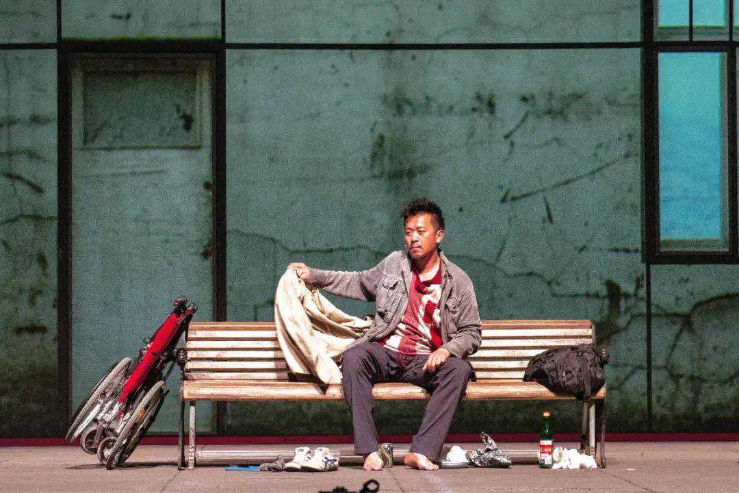 在史铁生的小说里,酗酒者名叫A;在陆帕的剧里,酗酒者名叫莫非,由演员王学兵饰演。莫非坐着轮椅,正奋力行走在一条莫比乌斯环上,没有方向,也没有尽头。史铁生、陆帕、王学兵,这三个灵魂之间就这样产生了奇妙的化学反应,碰撞出了《酗酒者莫非》这样一部非比寻常的话剧。