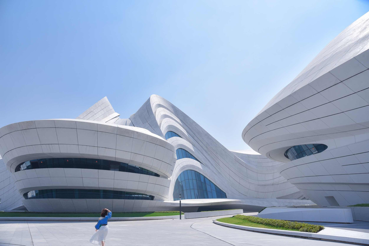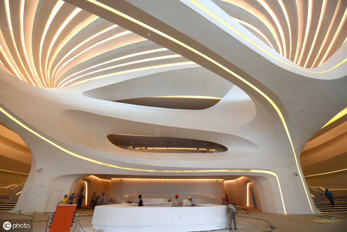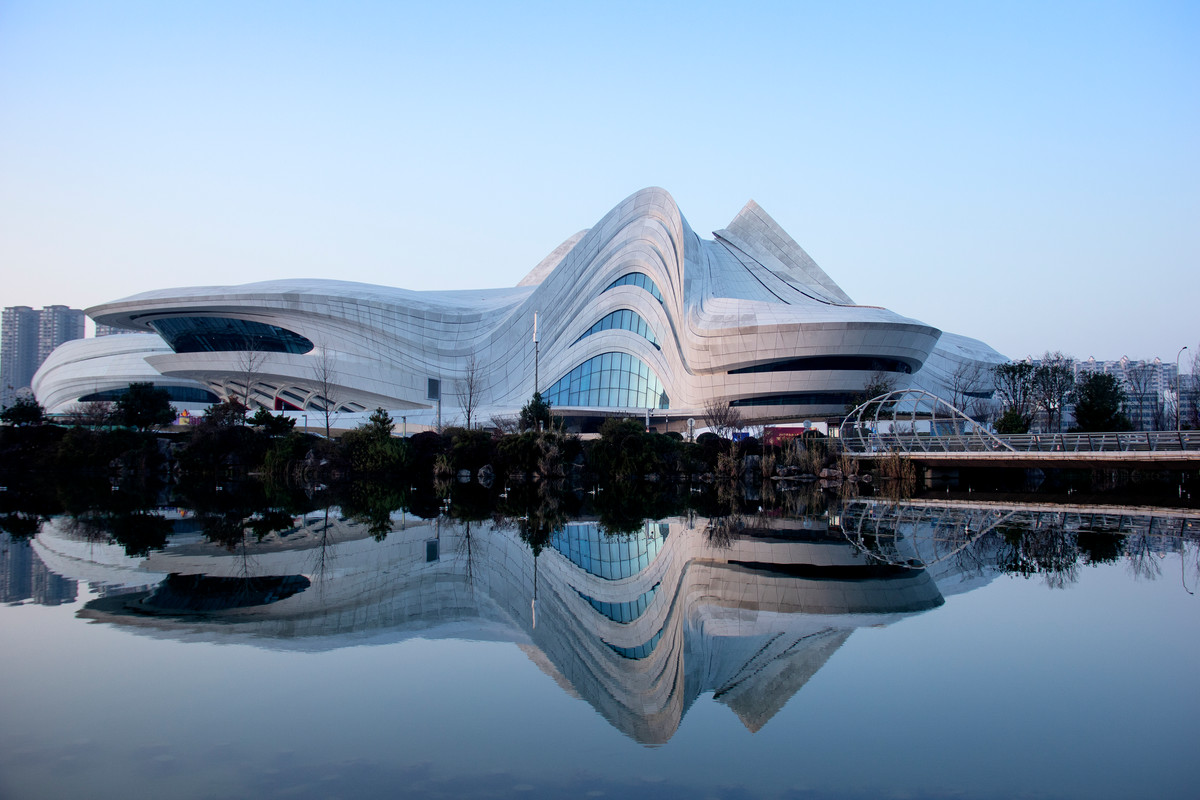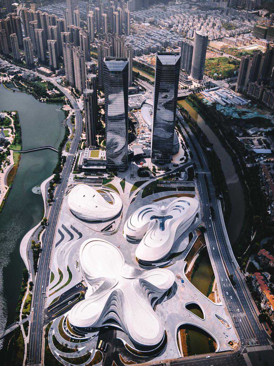 长沙市梅溪湖国际文化艺术中心位于国家级长沙湘江新区,由“建筑女王”扎哈.哈迪德设计,项目总投资28亿元。这个建筑面积高达11.5万平方米的文化综合体涵盖了一个剧院和一个现代艺术博物馆,在三个花瓣状的体块中间,建筑师还设计了一个小的多功能场地。
