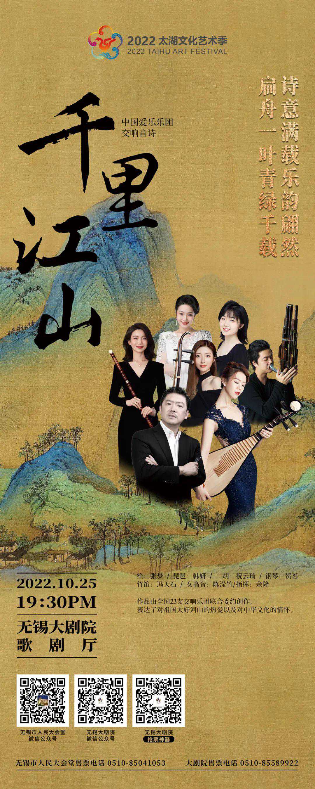 交响音诗《千里江山》由中国音协交响乐团联盟及全国23支交响乐团联合委约青年作曲家赵麟创作。与王希孟《千里江山图》相对应,交响音诗《千里江山》采用了六个乐章的结构,每个乐章中采用的不同器乐,构成了六幅风格截然不同的音乐画面。音乐会由中国爱乐乐团艺术总监、首席指挥余隆指挥,中国爱乐乐团演奏。
