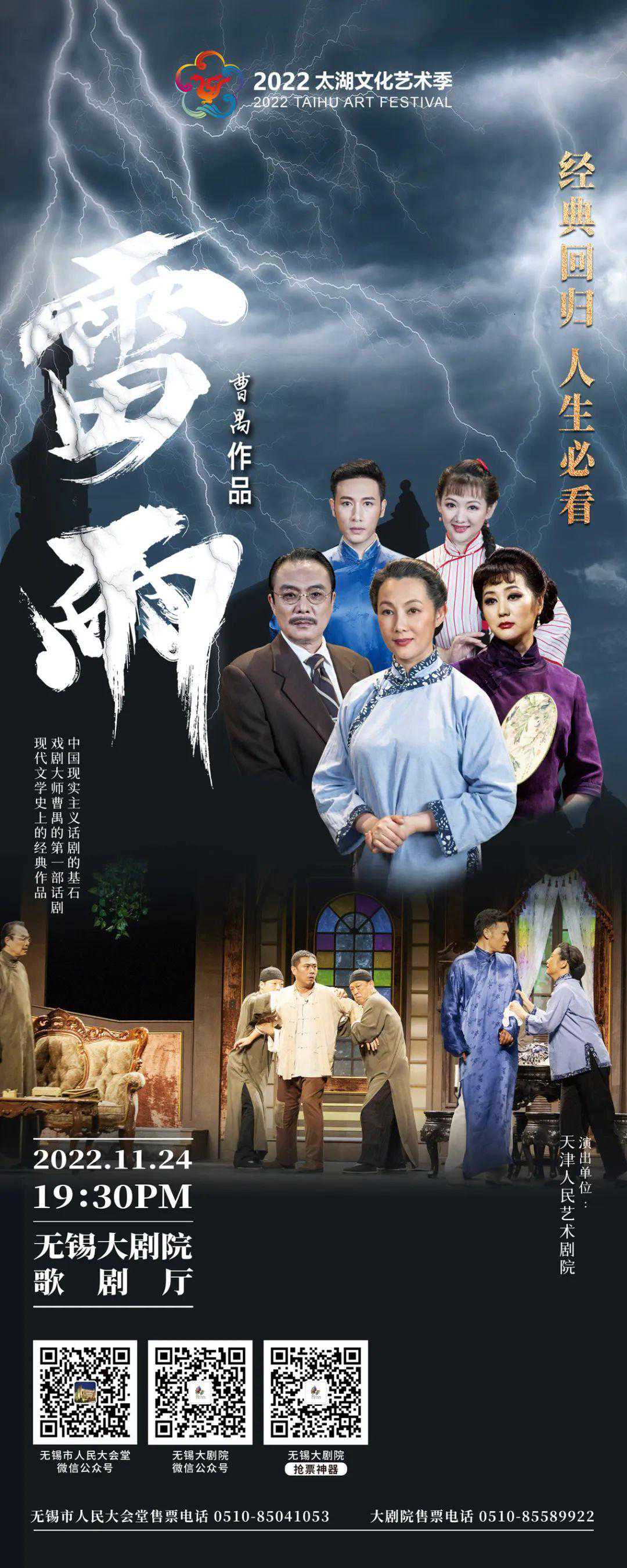 《雷雨》是中国现实主义话剧的基石,戏剧大师曹禺的第一部话剧,现代文学史上的经典作品。自1956年天津人艺将《雷雨》首次搬上舞台,历经60余载,该剧久演不衰,令观众荡气回肠,流连忘返。