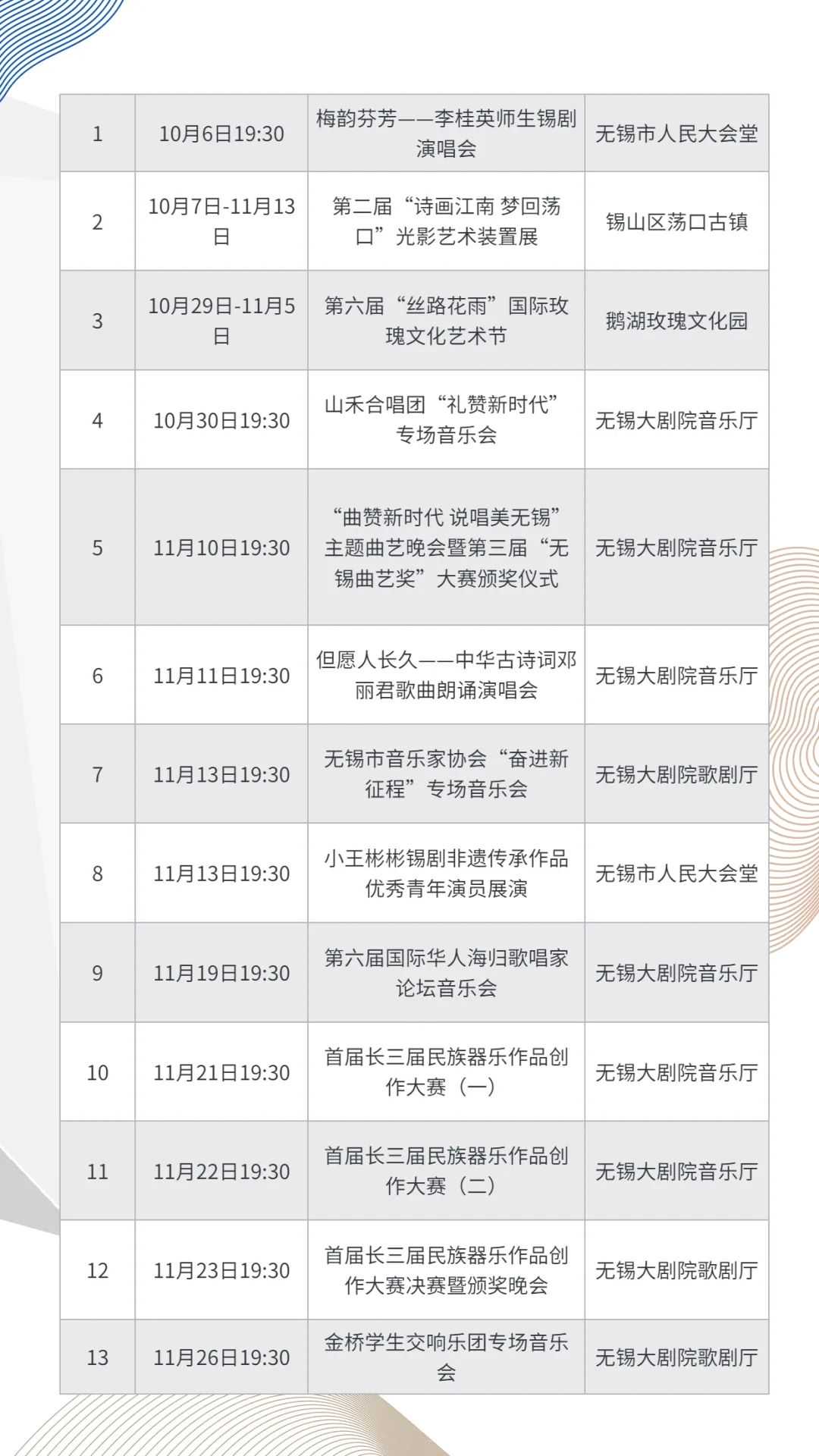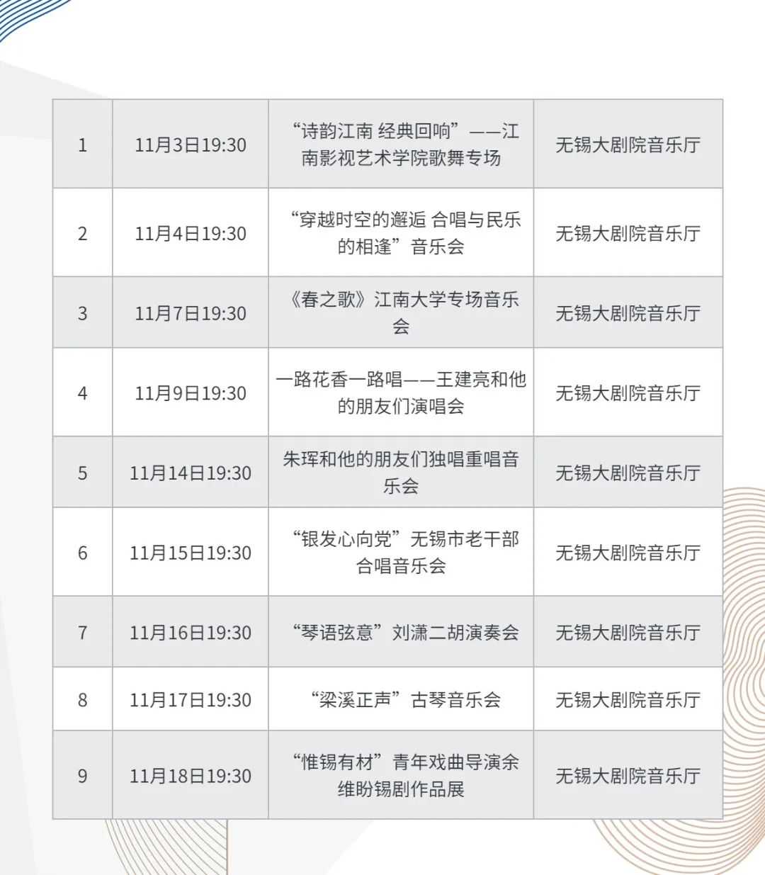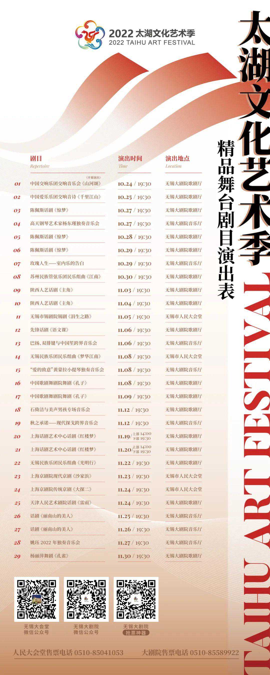 邀请国内名家、名团、名剧来锡展演,将有近30场精品剧目先后上演,交响乐、话剧、民乐、声乐、舞剧、戏曲……多元剧目荟萃,口碑好剧不断。